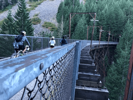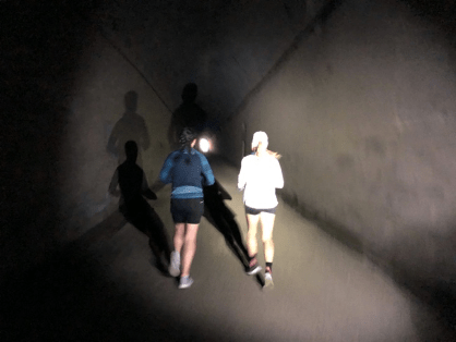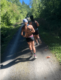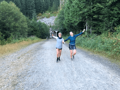 The route is incredible. We started early, so the first several miles were in crisp, foggy mountain air. The famous railway tunnel, 2 miles long, felt like running through a scene from Lord of the Rings. A small dot of light and Derek’s bike light guided us through the dark, wet tunnel before opening up to breathtaking mountains covered in evergreens. We continued on the trail, a gentle -1% gradient, running under a canopy of trees, over fascinating bridges, and past abandoned railway buildings. Mountain streams trickled by, a constant soothing sound echoed by the constant shuffling of feet. We slowly shed layers and handed them off to Derek, who was careful to keep us hydrated and fueled. The temperature rose from mid 50’s to low 80’s by the end.