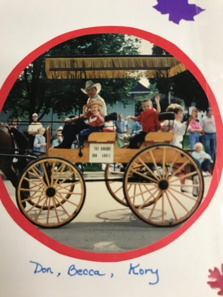 Riding in a local parade with my cousin, Kory, Papa, and Grandma.