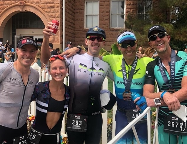 Before we knew it, race day came. The water had warmed up slightly, but sadly the age group athletes don’t get any water access prior to the race start. Elliot turned to me and whispered some last minute words of wisdom to me, and in we went at 7 am. Sadly, I swim a pace that most competitive age groupers swim (32 ish minutes) so it was crowded, physical, and still cold. I focused on energy management more than anything. The goal was to finish without conceding too much time or energy overall and, after the little freak out I had a few days before, not giving in to anxiety. My chest felt tight from the nerves, and probably a little from the cold, but I was able to get into a decent flow. I knew by the way I felt in the water it wasn’t going to be my fastest swim, but that I was going to finish it. Came out with a 32 high, not bad, certainly not great. Training motivation!