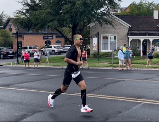 I saw Elliot and our friend Sascha as soon as I left the transition area. “You’re in third!” Elliot yelled at me. Honestly, I was smiling and over the moon just to see him, as I had told Elliot all week that I would just be happy if I survived the swim and got through the bike without a mechanical. “I biked really hard!” I yelled at him as if to prepare him to see slow run splits come through on the Ironman Tracker app, which is allows you to see an athletes times as they cross timing mats out on the course. I enjoy running over these timing mats, as I know loved ones are watching the race from all over the county in long distance support of me. To all of you who were enjoying the battle play out from afar, THANK YOU. It lifts my spirits out there!