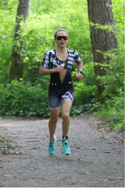 After a strong bike of 2:34 and change, I braced myself for the run. This is always what I look forward to the most, and I still did even on this uncertain day. I was determined to finish what I started even if it meant humbling myself to a walk in order save my ankle. My watch wasn’t working well, so I ran by feel, which was really the plan all along. I passed two girls in the first mile, and then ran completely alone for the entire first loop of the 2-loop, trail run course. The cool air felt really good on the run, as I wasn’t in great run shape and likely would have suffered had it been warmer. I got pretty consistent updates about my position on course, as there was no pro men or women’s field. I was surprised not to see any age group men, so I figured I was either running really well or really poorly. I could feel my ankle injury, but it never progressed to a sharp, stabbing pain, like it had early on in training post-injury. I monitored it and took the time to step carefully on the trail.