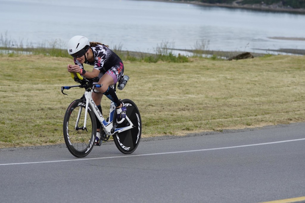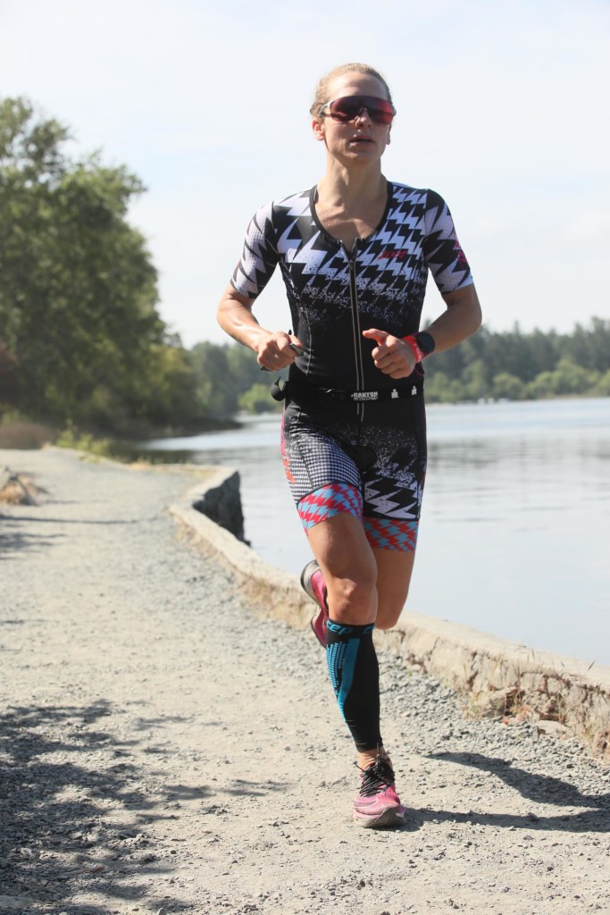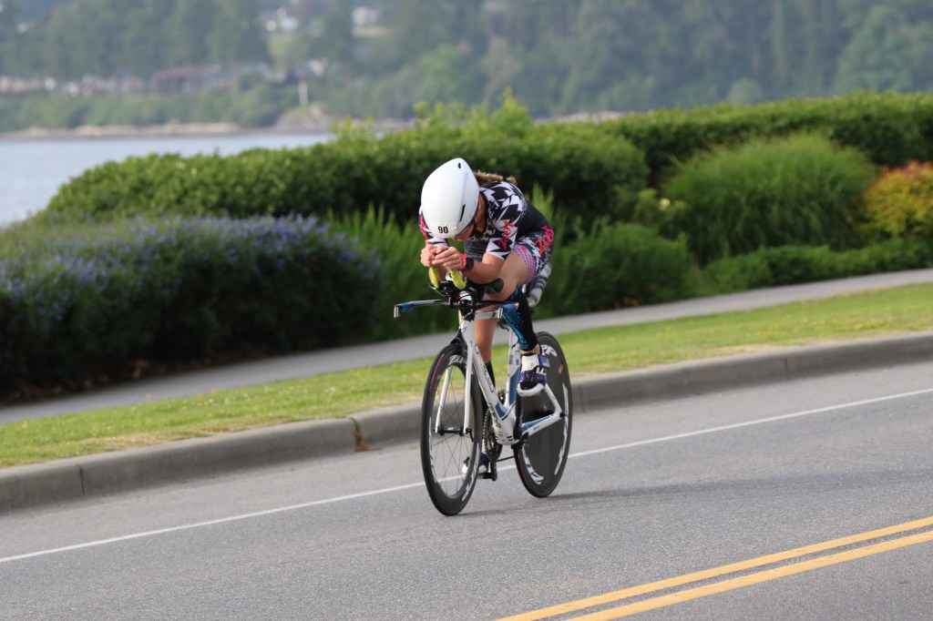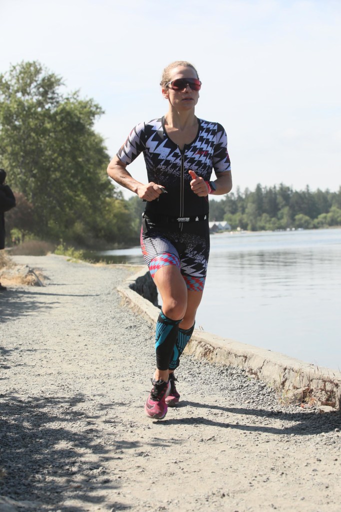 The bike course in Victoria is beautiful. It’s not the fastest course, with rolling hills and a lot of tight, technical turns. There are beautiful farmlands and ocean beach views; I remember thinking of my dad when riding by a serene field. Another female began riding with me at the 40-ish mile mark, and we paced well together. Long course triathlon is not draft legal on the bike, which means you must keep 6 bike lengths between you and the athlete in front of you at all times. When you ride with someone about your strength, you can alternate “turns” in front, which helps the time pass by and keeps the tempo up. I was very happy for the company with about 15 miles to go! We exchanged encouragement, and pedaled our way to the one prominent climb (about 1200m long) late in the course.