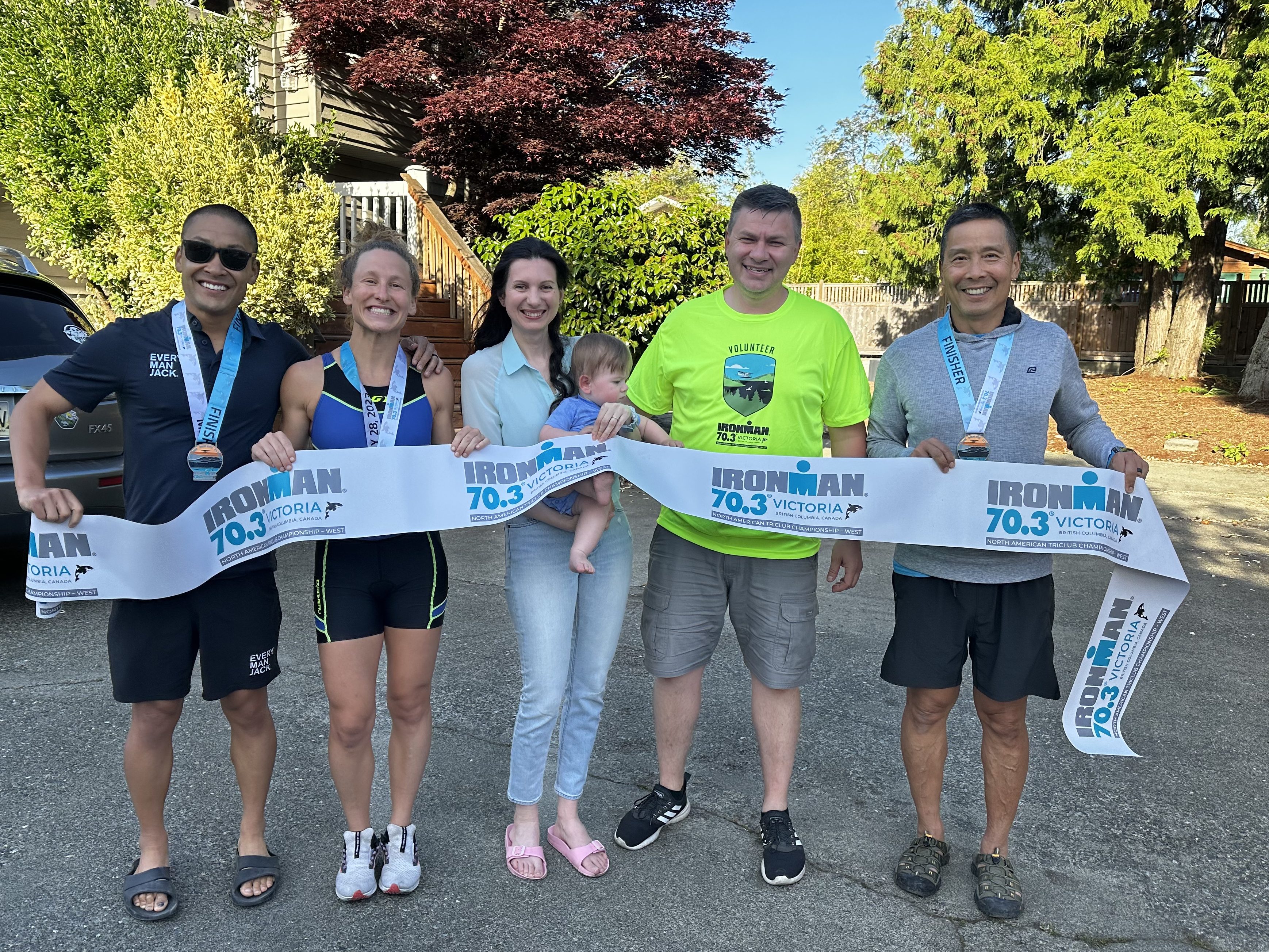 Whew. Elliot and I are very glad to have the first big race of the year successfully behind us! This is our third time in Victoria, Canada for the half ironman triathlon: a 1.2 mile swim, 56 mile bike, 13.1 mile run. We both competed in 2019, 2022 and 2023. It has been so fun to visit new places and re-visit some of our favorite spots on this quaint island. We enjoyed the company of Elliot’s Uncle Derek, who also competed in the race, and Aunt Ann! I had an athlete, Jason, racing as well.