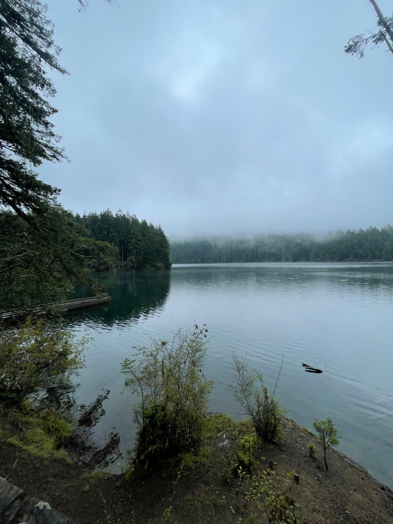 The course was BEAUTIFUL albeit challenging. The trails were perfectly marked every 100m or so with Otillo flags, so we never got lost. A mysterious and haunting fog settled high up in the mountains; I’ll never forget the scenery of running through the woods there. The lakes were pristine, uninhabited, and clear with green-blue water all lined with trees. It was special to swim to islands in the middle of the lakes, scramble over the short rocky banks and dive back in to swim to shore. Despite being in a remote area on Orcas Island (mainly in Moran State park) we never felt alone. The volunteers were awesome directing us, the course was well marked and supported with aid stations at key moments, and other participants helped keep us uplifted and on-course.