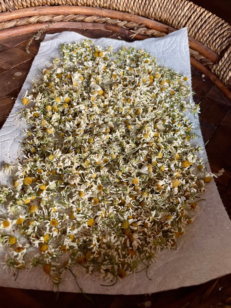• Chamomile – Sip chamomile as a tea to calm the nervous system, support digestion, and reduce stress-related skin flare-ups. Used externally in a wash or salve, this astringent soother gently relieves redness, irritation, and inflamed or reactive skin.