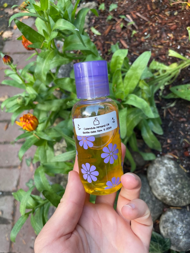 - Tightly pack a sterile jar with calendula flowers and cover with oil.