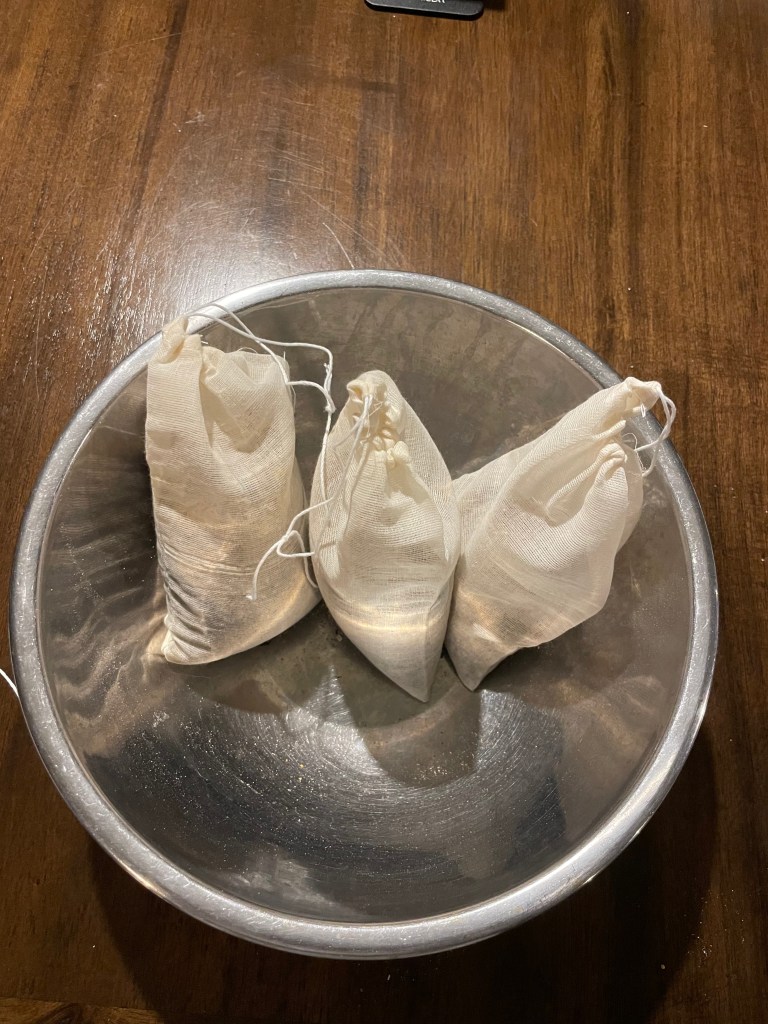 - Eqipment: mixing bowl, spoon, measuring cup, blender, large muslin cloth bags