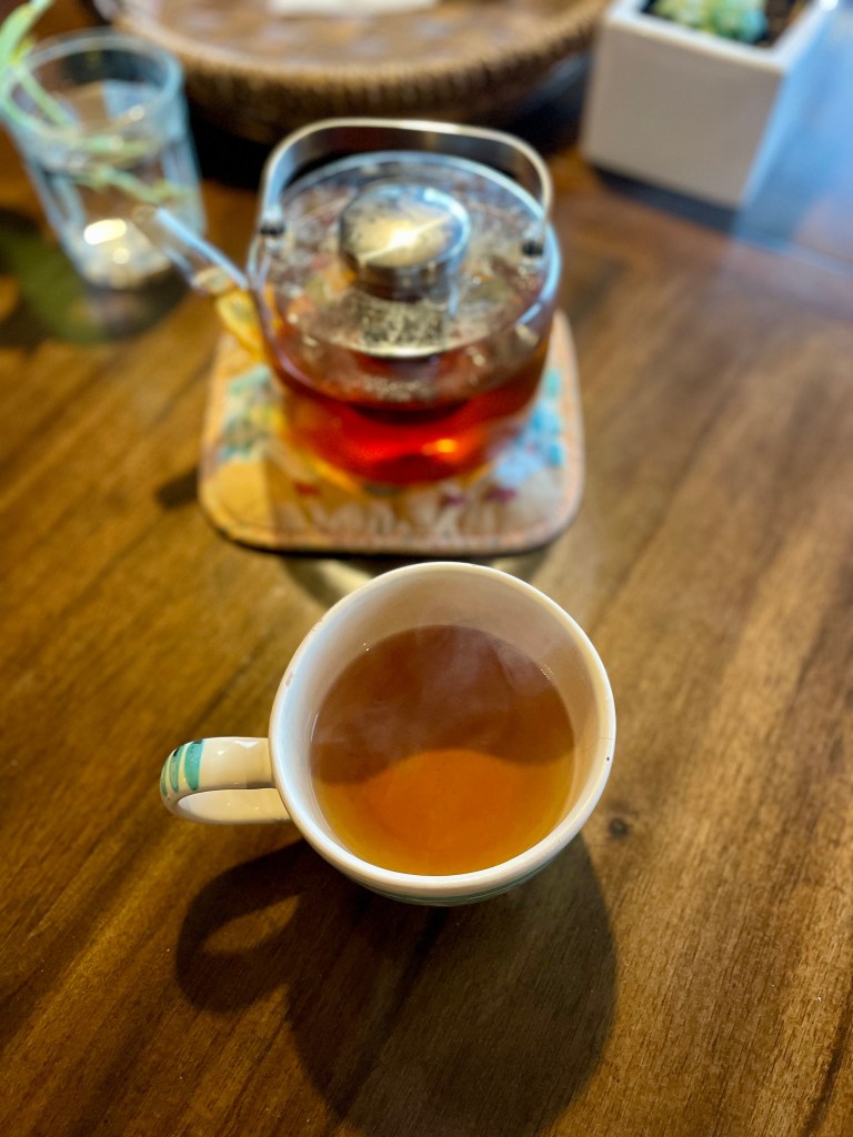 - Holy basil and mint are a beautiful pair. I often look forward to drinking a cup of this in between work and exercise, or have it as soon as I’m done for the day as a way to make space for myself after serving others.